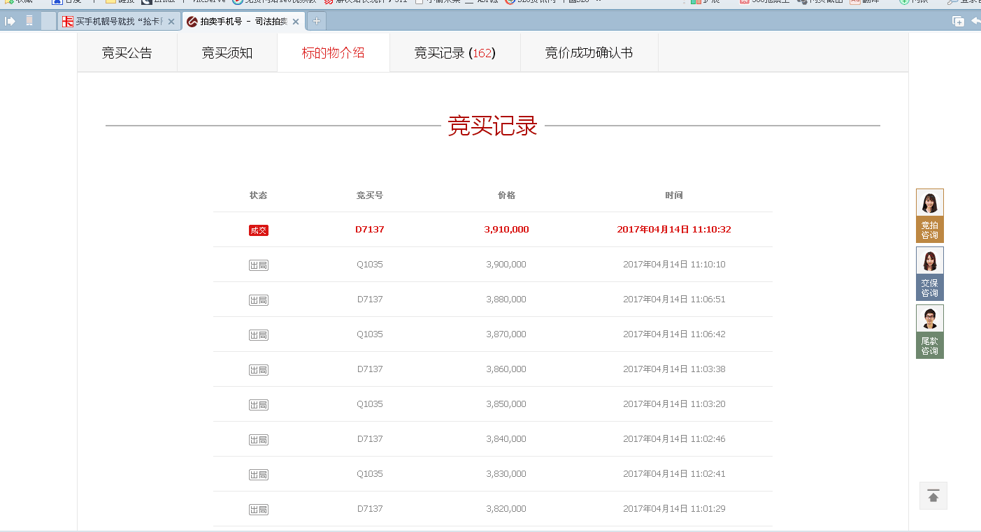 本次法院的拍卖,可以看出一个事实,就是手机靓号他也是一种固定资产,是一种奢侈品,它跟房产是一样,但它的唯一性注定它只会升值,注定它的投资要稳定于任何投资,可售,可抵押,可贷款。